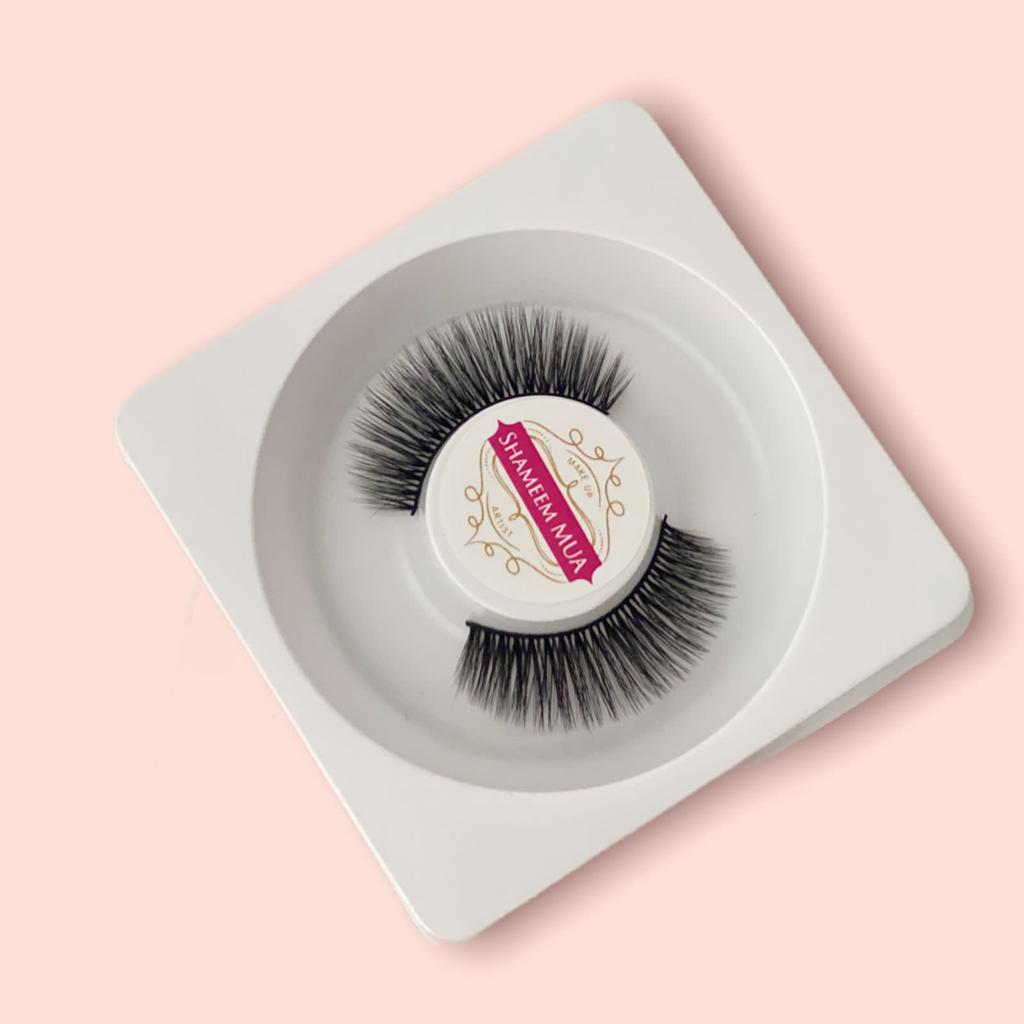 These Silk lashes are light and feathery, creating natural-looking lashes. Shameem_mua’s false eyelashes can be re-used up to 15 times (depending on care), to dramatically enhance your eyes. Ideal for everyday enhancement, an invisible cotton band for thoroughly convincing definition. Remove from packaging and ‘wiggle’ band to loosen. Measure against eye (you can trim to fit) before applying Lash Glue (sold separately). Apply lashes – you may find it helps to use tweezers – then hold in place for a few seconds to allow the glue to dry.