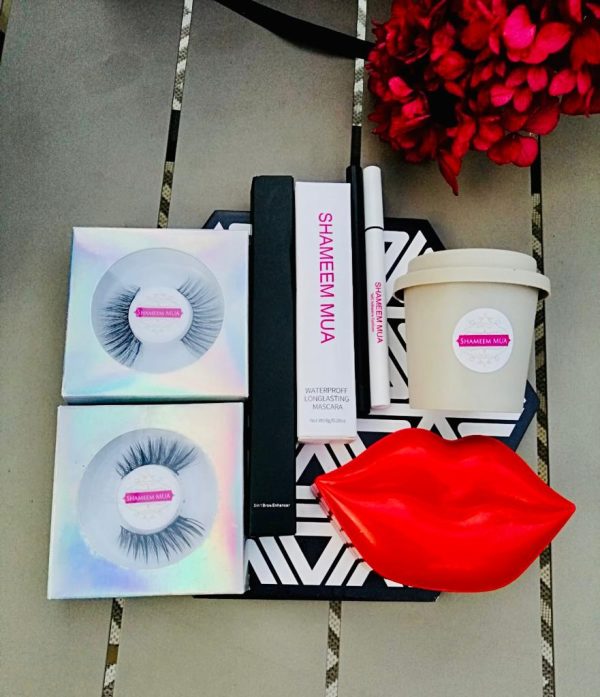 Liquid eyeliner, glueliner, 2x lashes of your choice, mascara and a 3-in-1 Brow Enhancer,